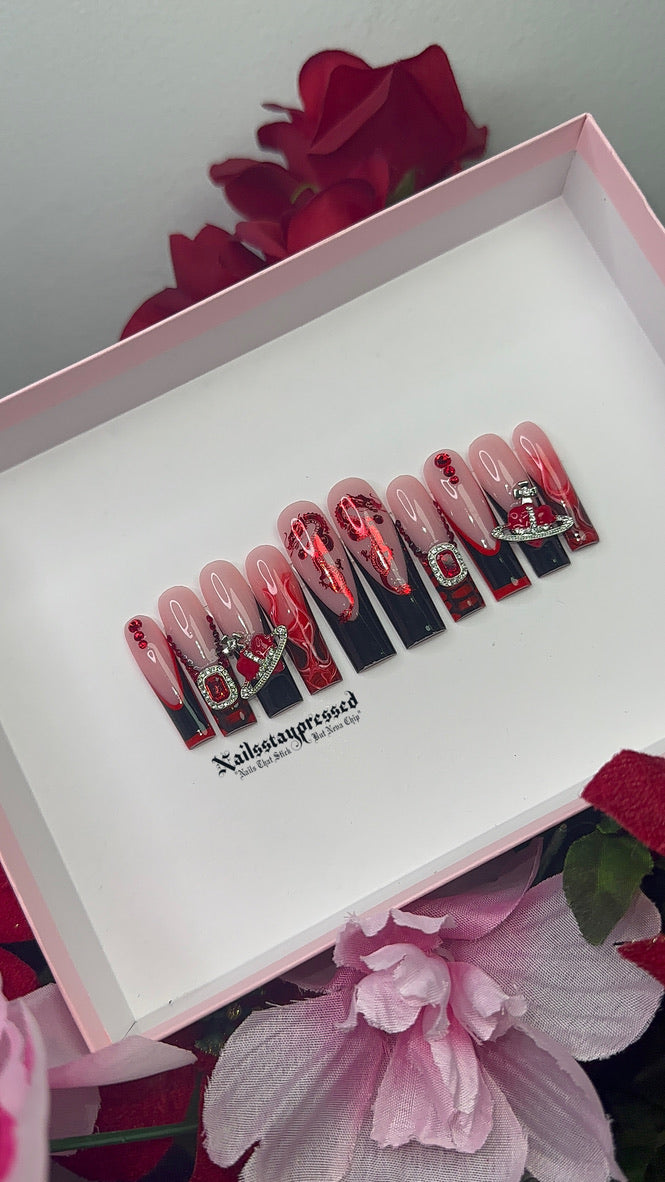 Introducing Back in Blood: the nail set that provides a deep red color that lasts up to 14 days. Achieve salon-quality nails at home with this long-lasting and easy-to-use set.