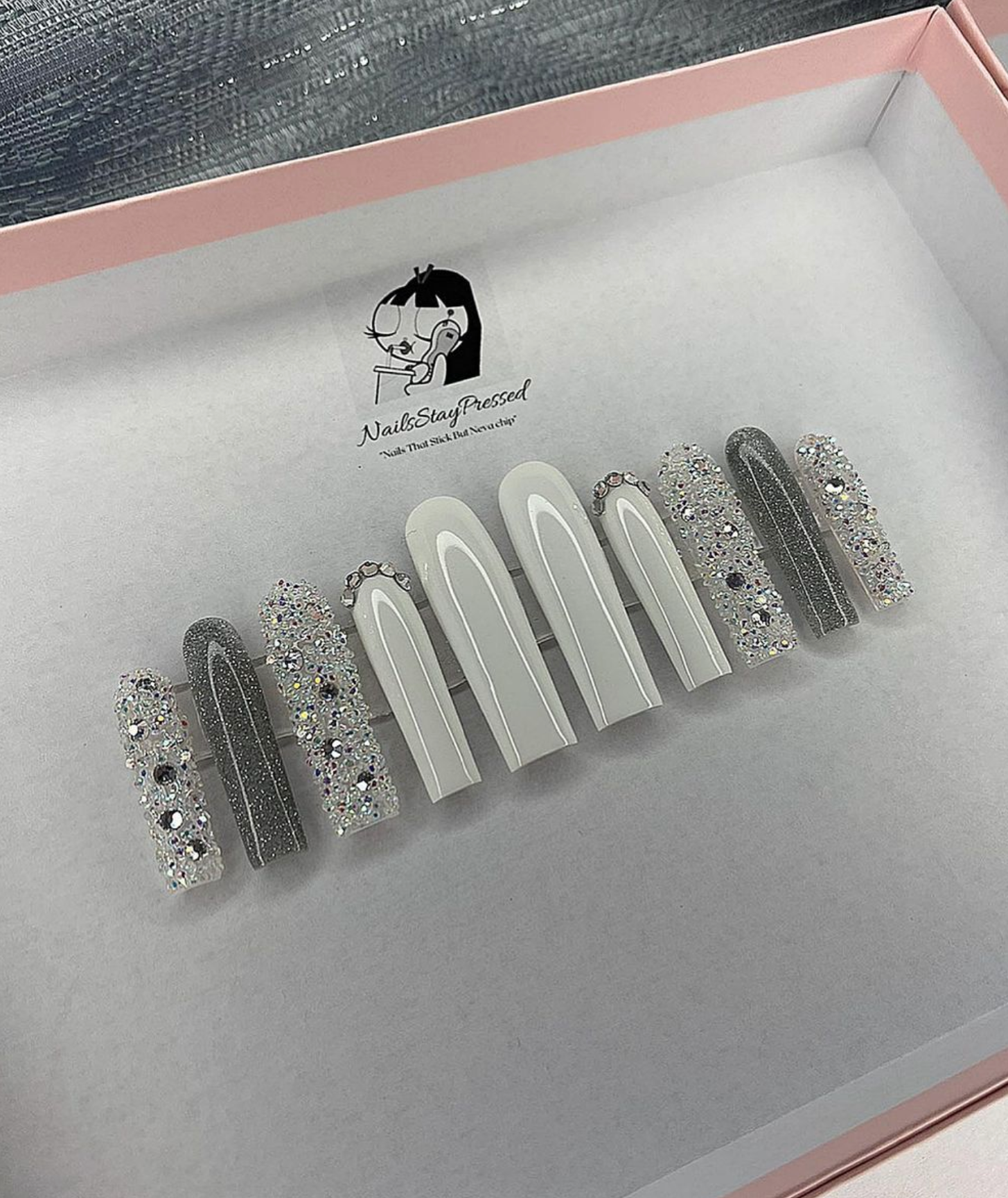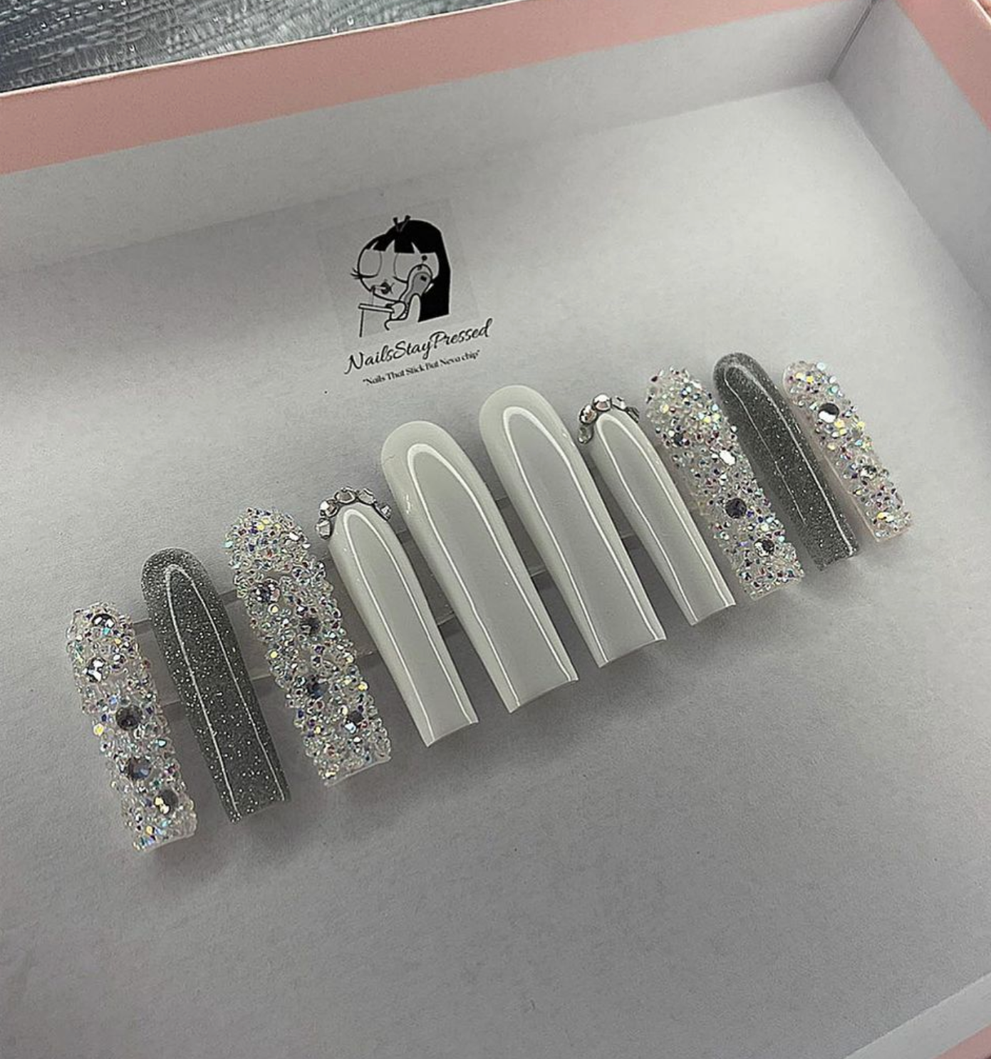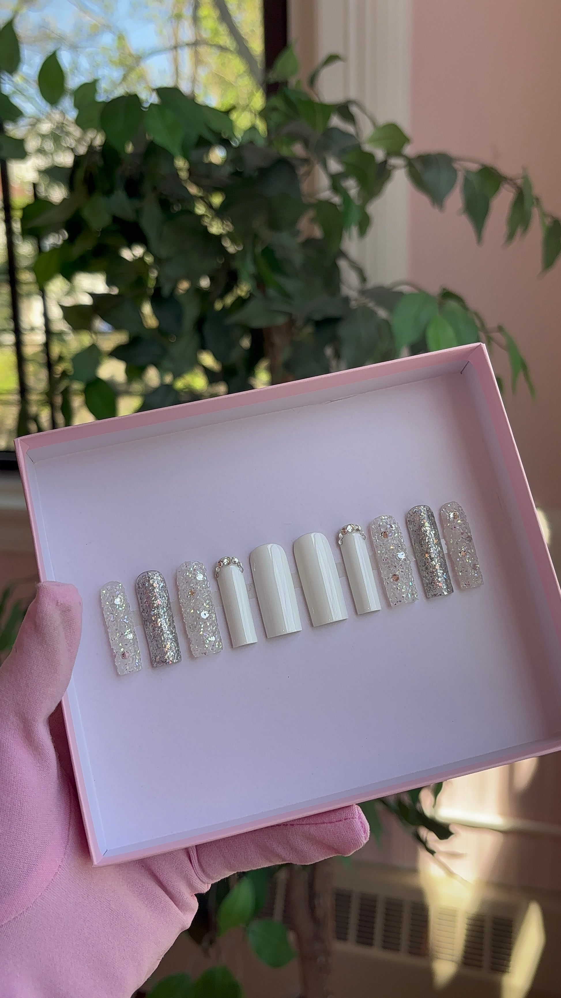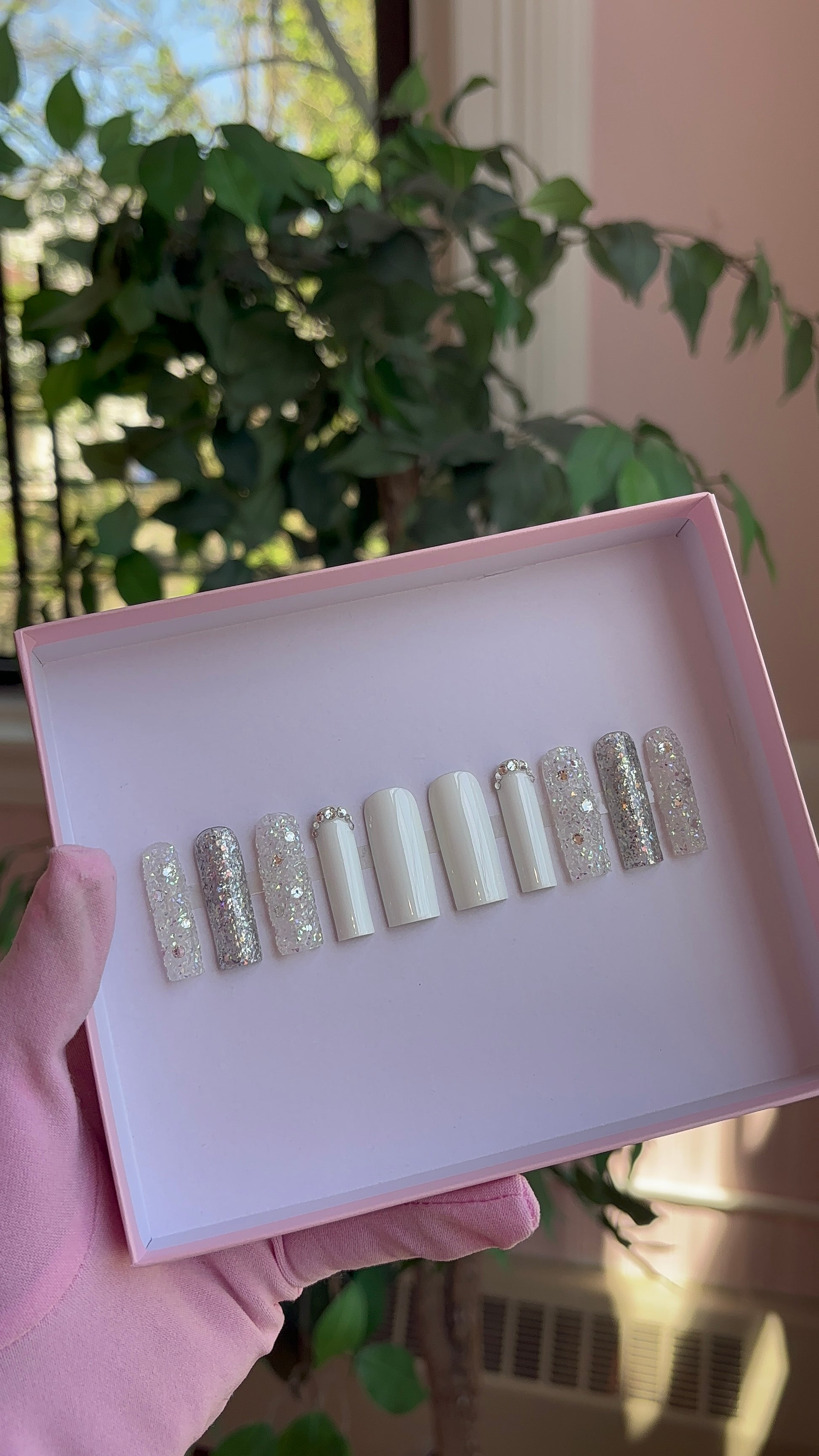 Introducing Icy Princess, a sophisticated nail color combination of white and glitter. Our exclusive color palette is perfect for the bold and fashionable. Experience a high-end look with a hint of sparkle for your nails!
